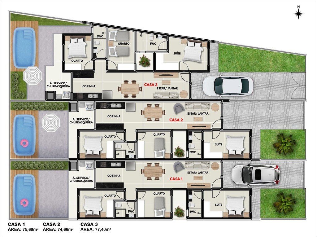 Área privativa 75,69 m² Área total 135,00 m²