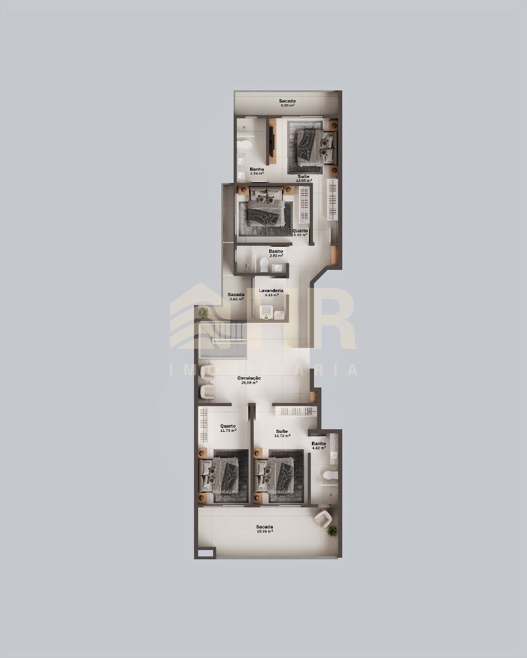 Cada unidade da cobertura conta com dois terraços frontais com vista definitiva para o mar, perfeitos para relaxar, contemplar a paisagem e viver o melhor do litoral.