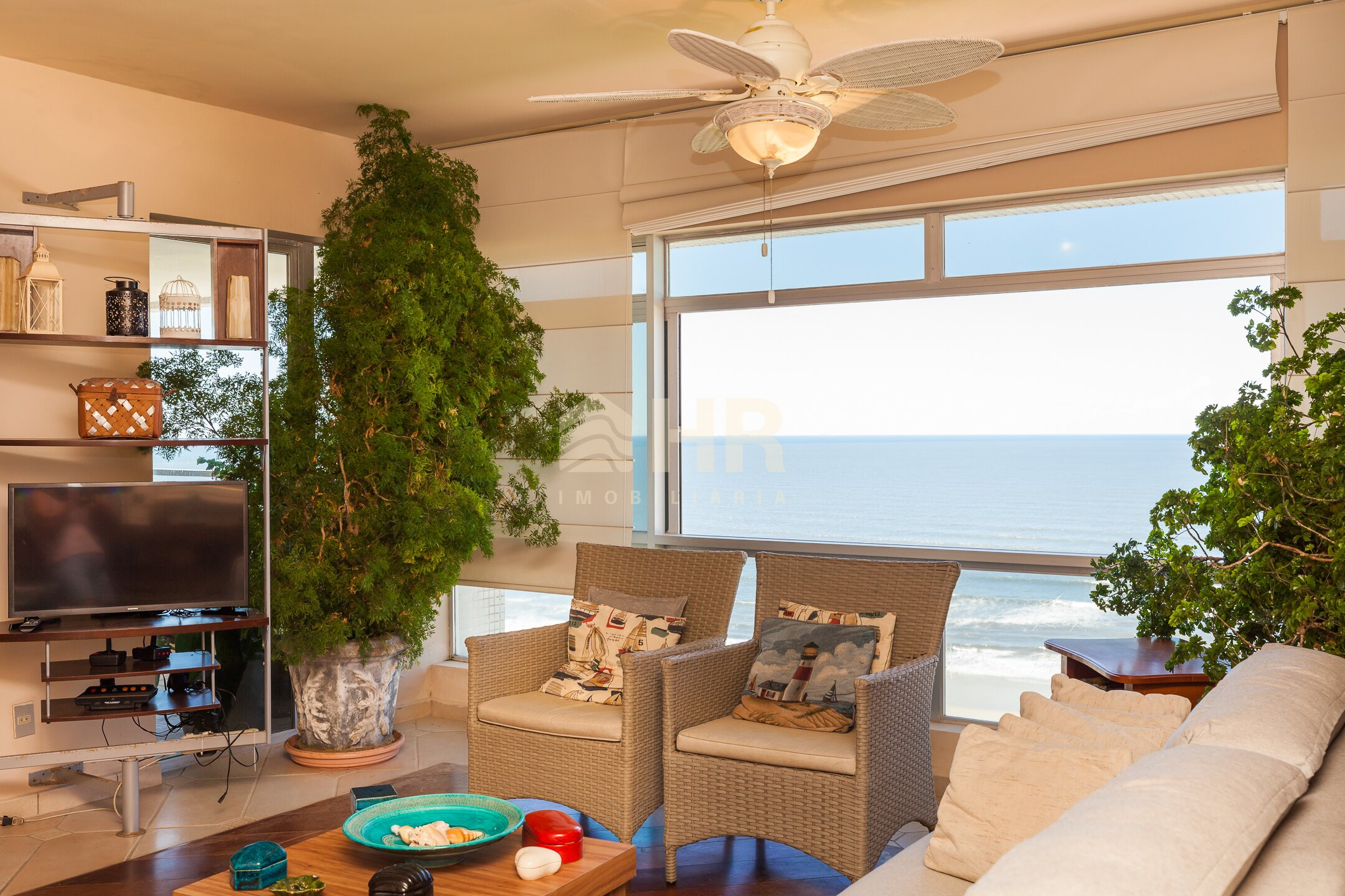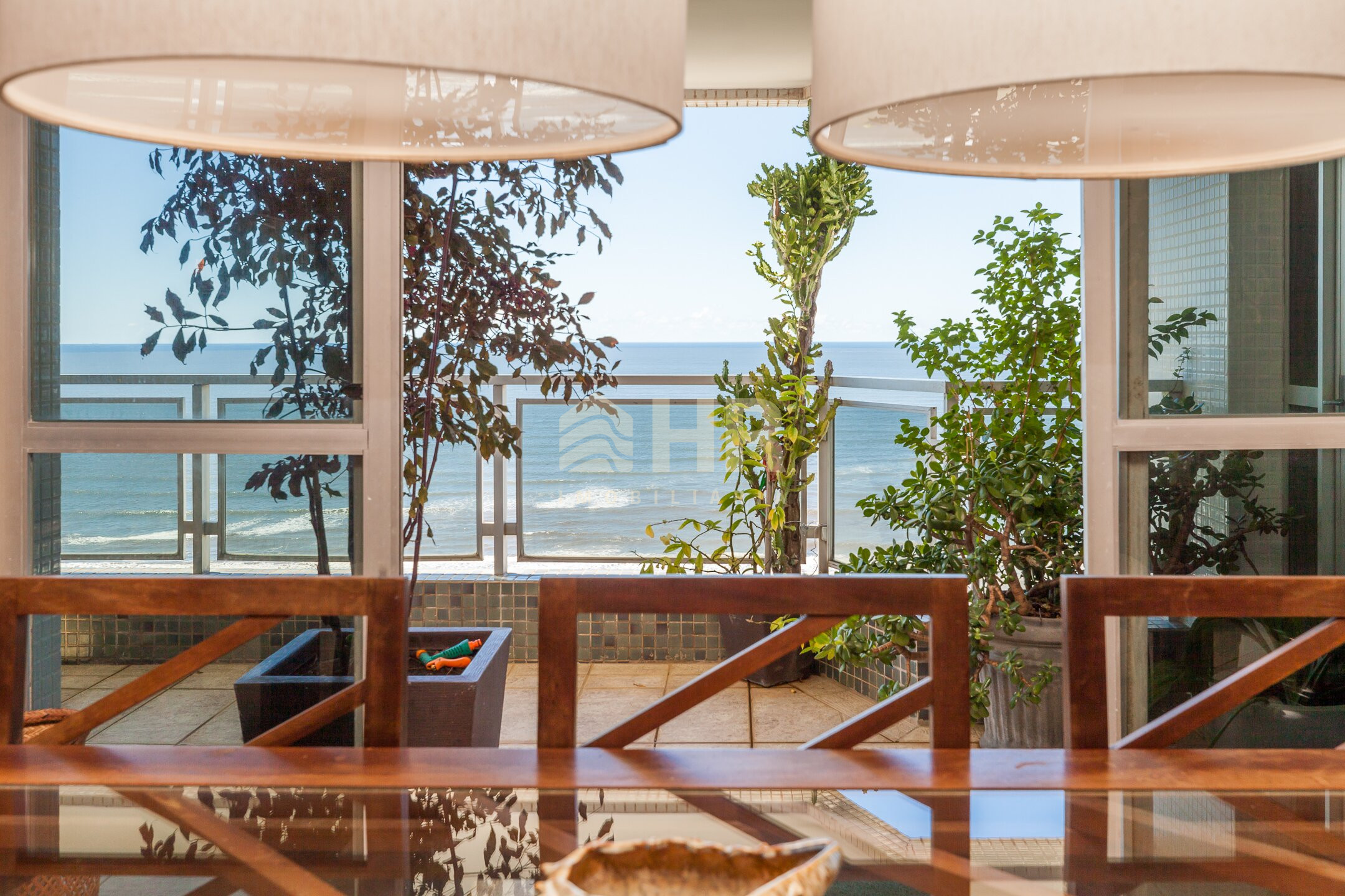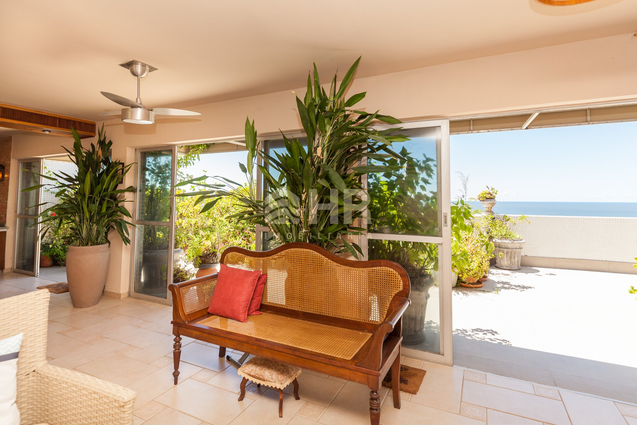 Ampla sacada com vista panorâmica para o mar
