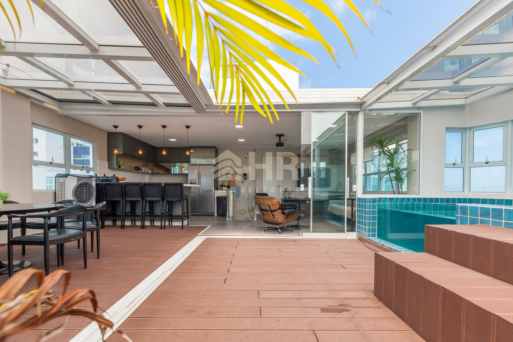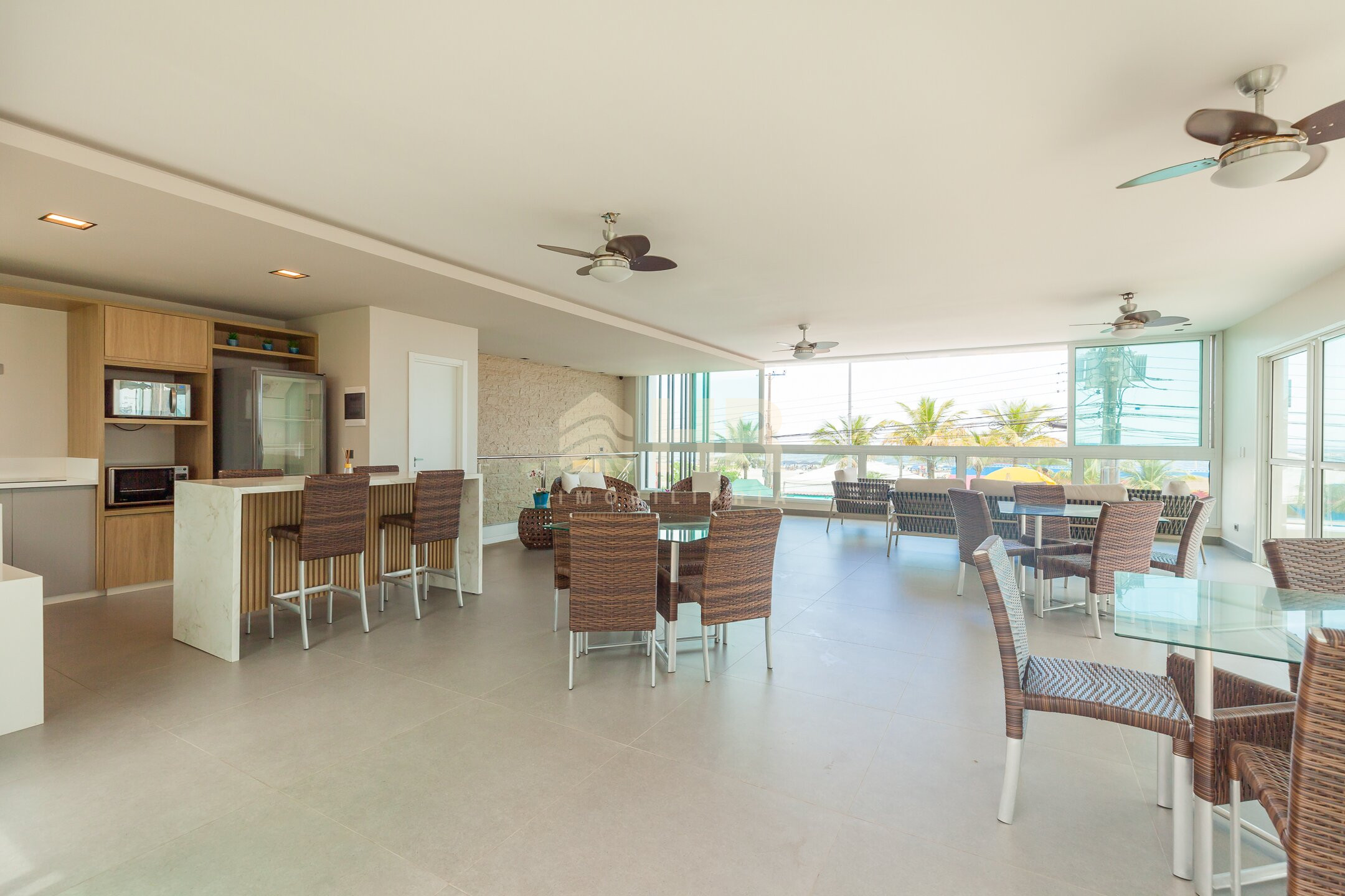 Espaço Gourmet de frente para o mar, com lounge externo